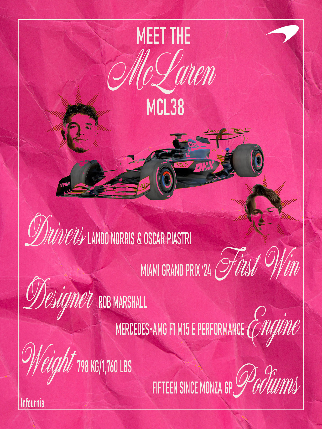 Inspired by the iconic Lotus 49, this project focused on developing Hornet Racing’s 2025 livery in celebration of the team’s 30-year anniversary. My role was to design a logo that mixed Lotus’ historic yellow with the team's identity. One of the main challenges was balancing inspiration with originality, referencing a well-known design while ensuring the final result remained distinctly representative of Hornet Racing.